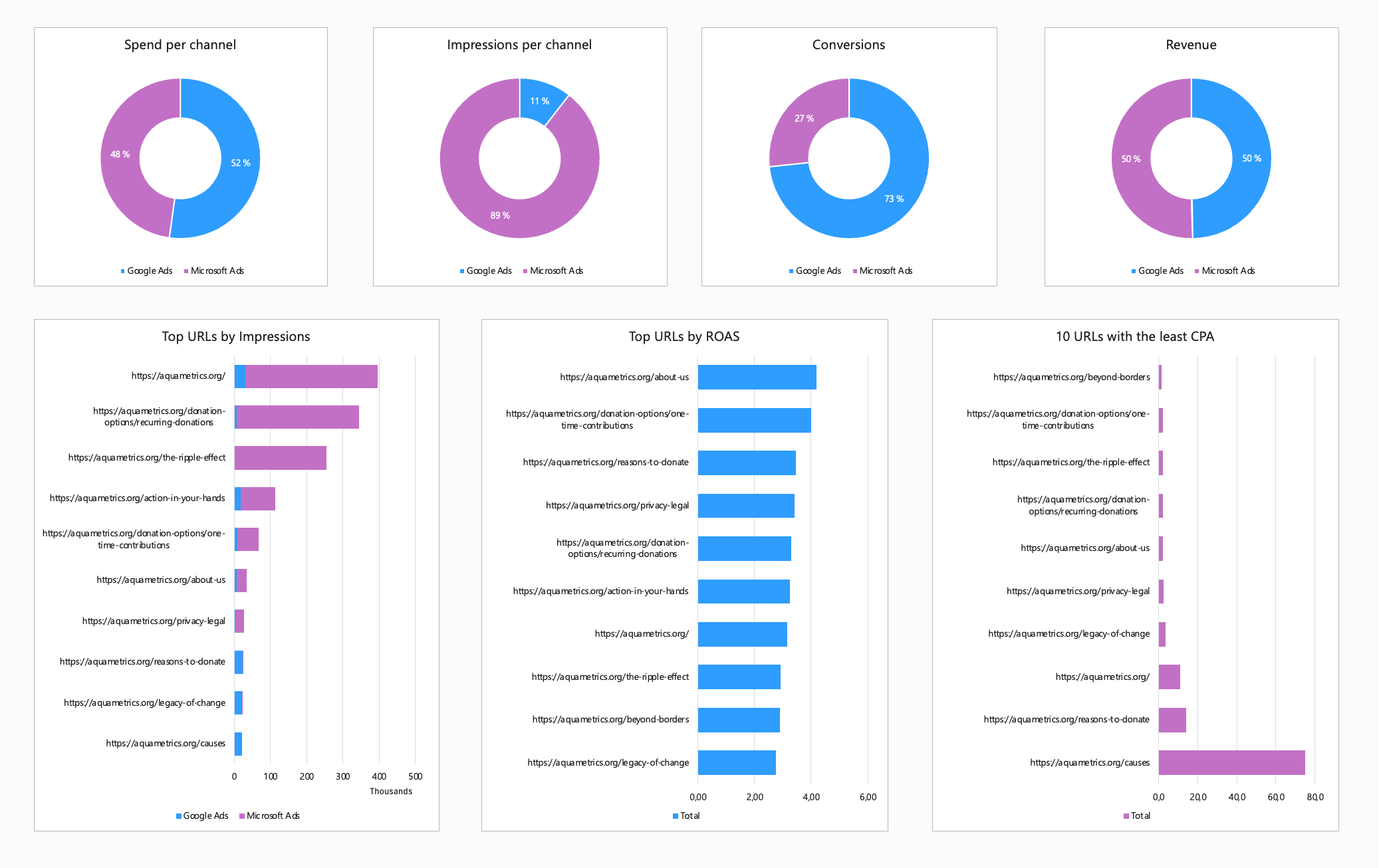 - Which channel offers the lowest CPA and highest ROAS?