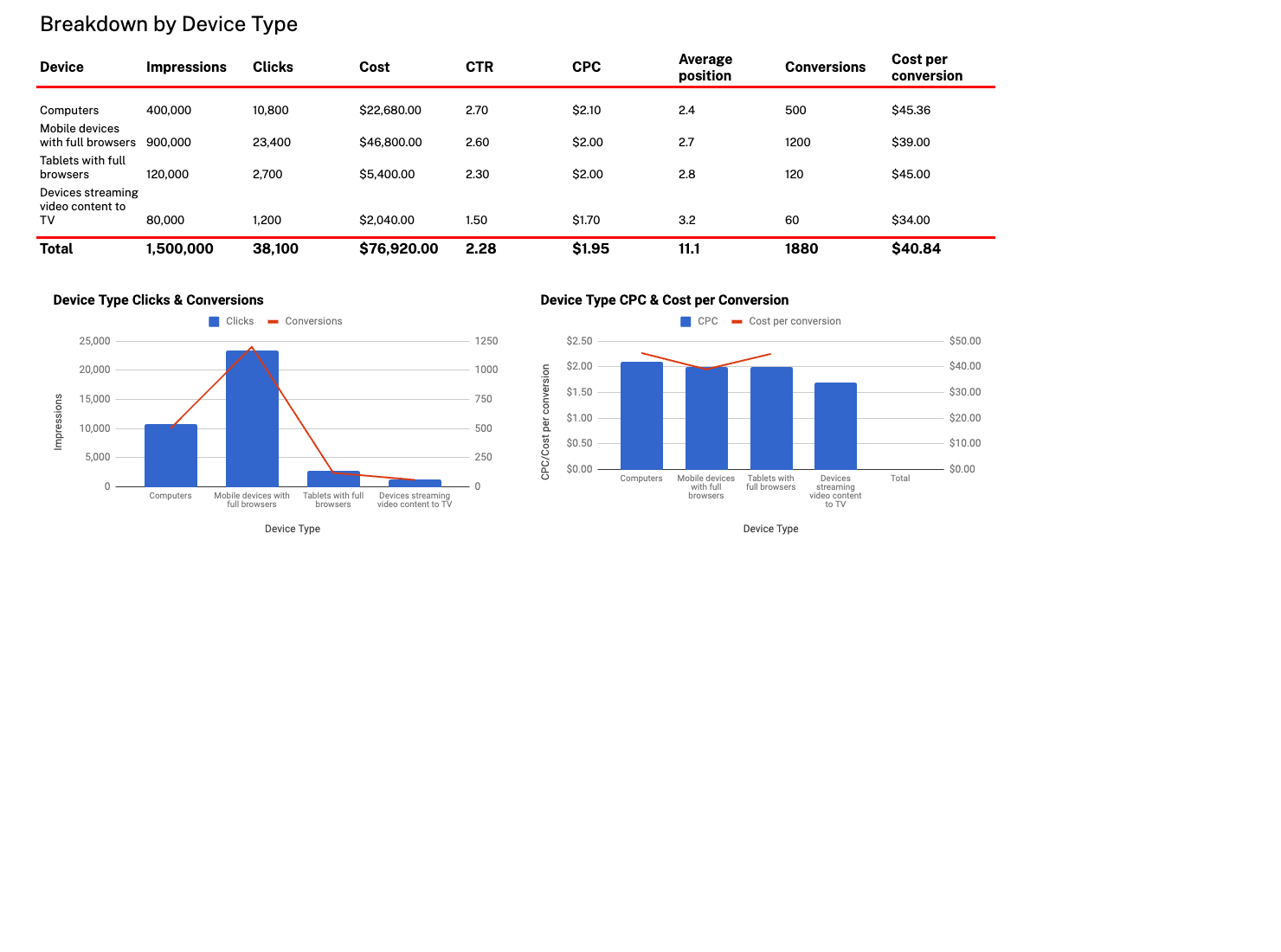 - On which devices (e.g., iPhone, desktop, Android) do ads perform best?