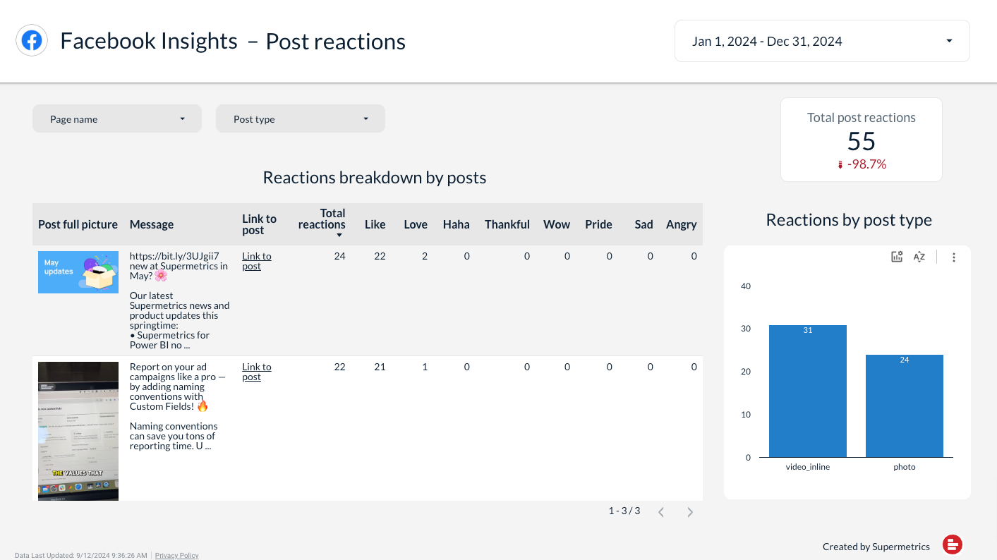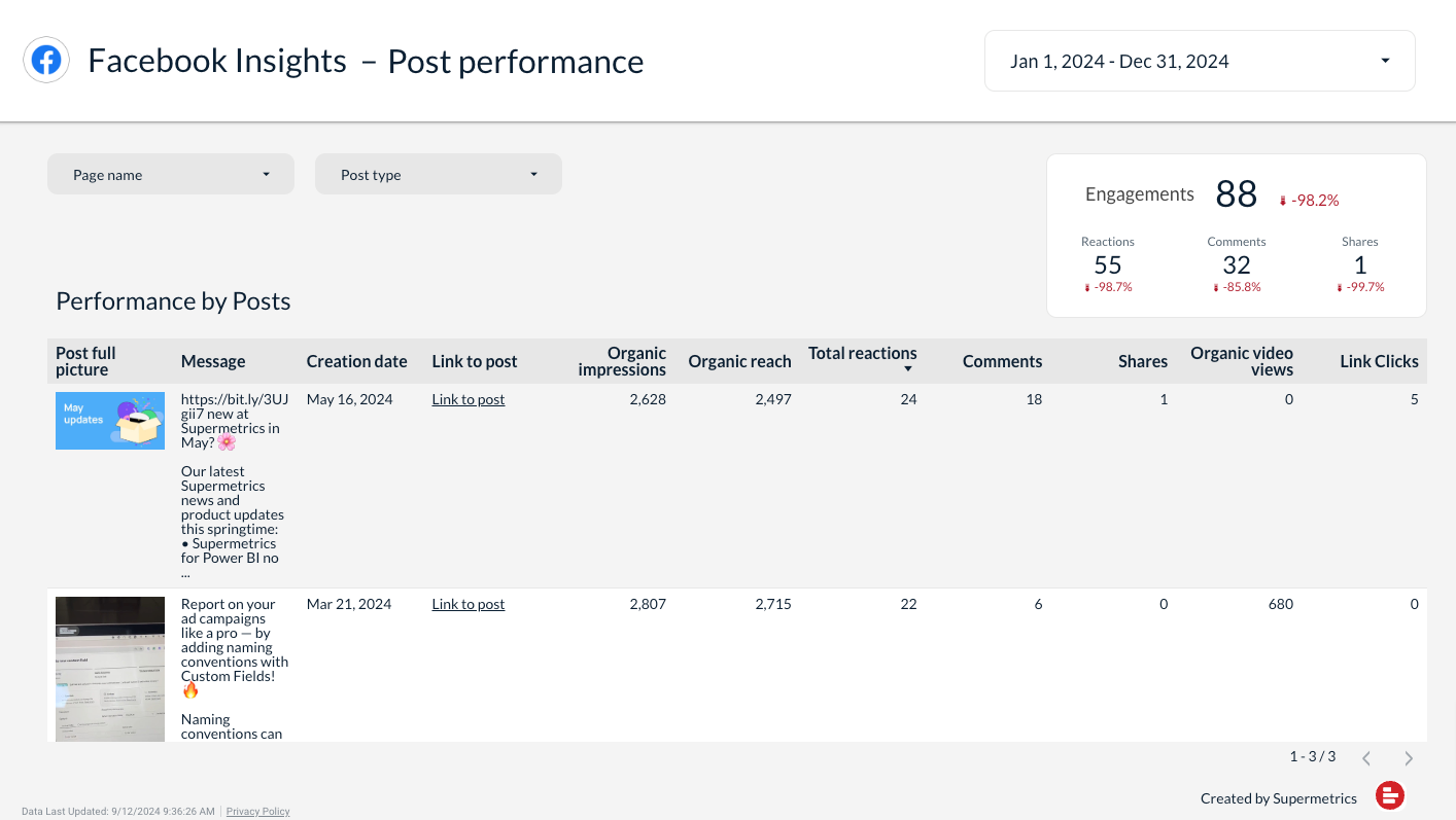 Optimize the organic visibility of your Facebook page with this Facebook Insights reporting template for Looker Studio. See instructions below and start using the template!