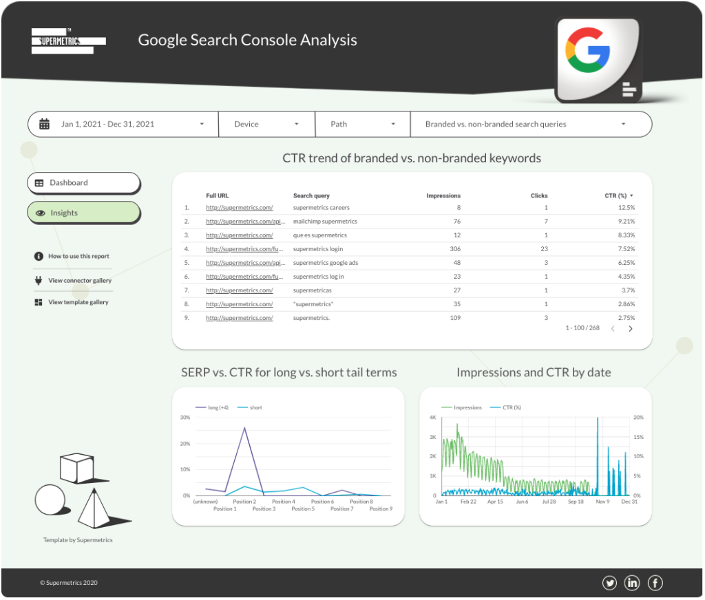 Google Search Console reporting template for Looker Studio