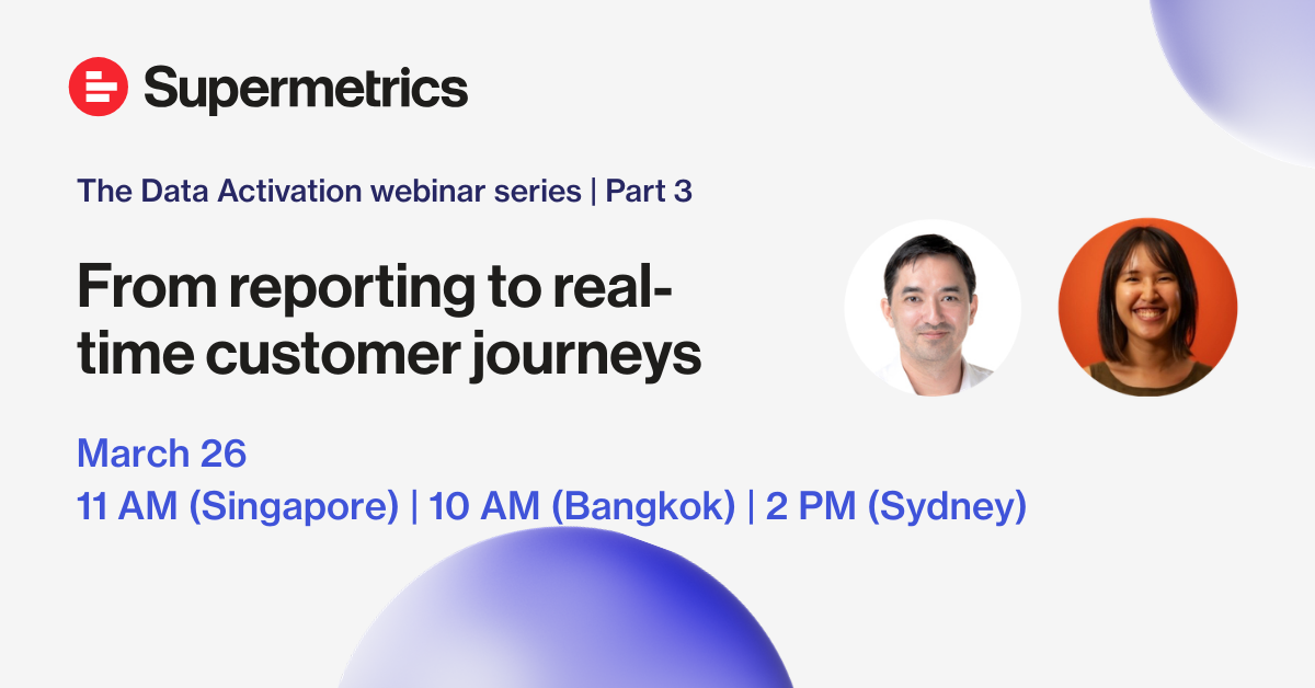 Join us for the third and final webinar in our three-part series on Supermetrics Data Activation, where we explore how Data Activation becomes the missing link between your unified data and real-time marketing action.